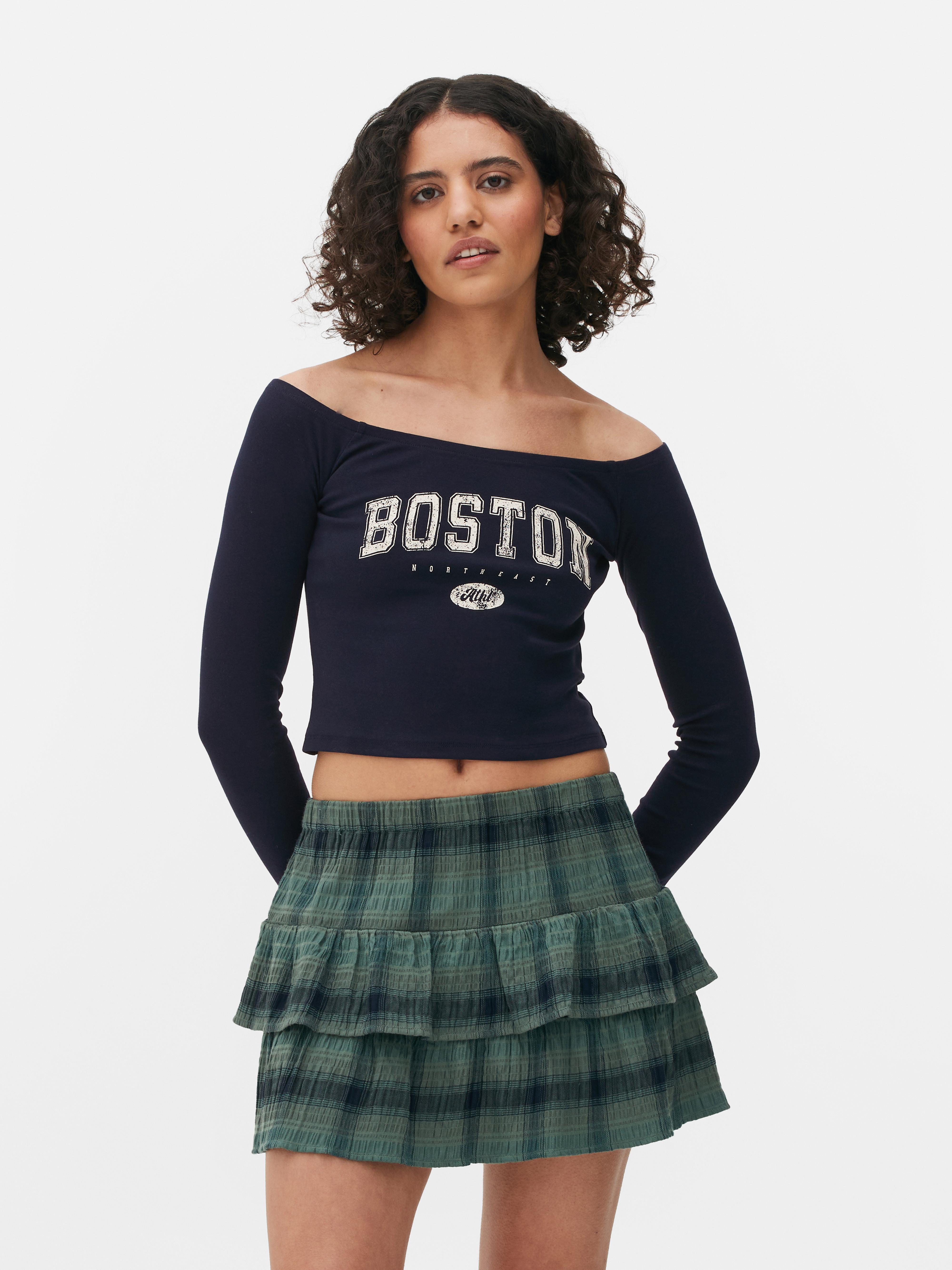 Womens Navy Long Sleeve Bardot Neckline Crop Top Primark Very well made.
