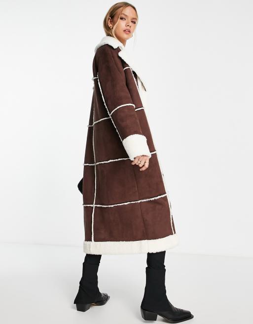 Annorlunda faux shearling maxi coat in dark chocolate Very well made.