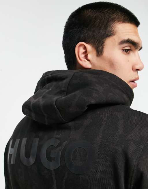 HUGO Daglion relaxed fit hoodie in black with all over animal print with back logo Very well made.