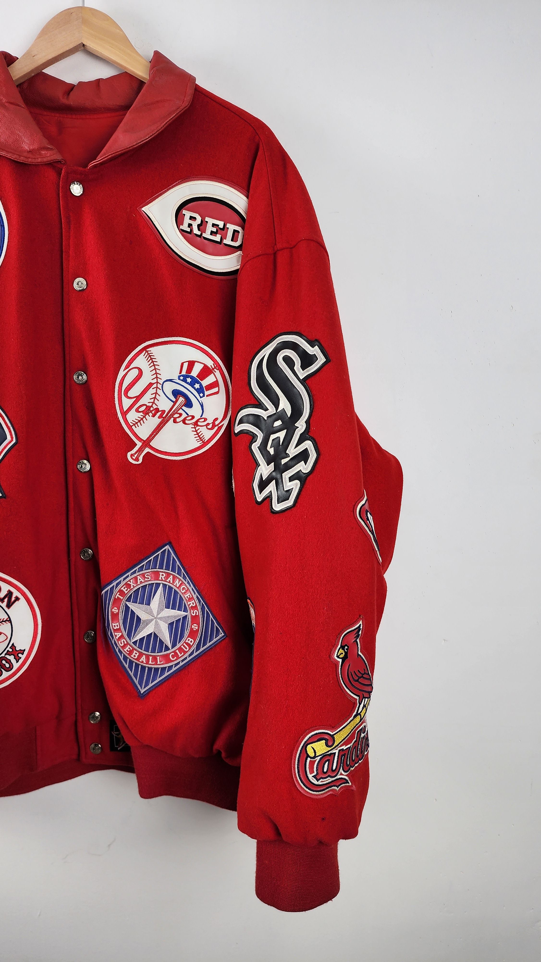 Jh Design MLB Made In Usa Rare Reversible JH Design Multi Team Collage Red MLB Jacket Grailed Very well made.
